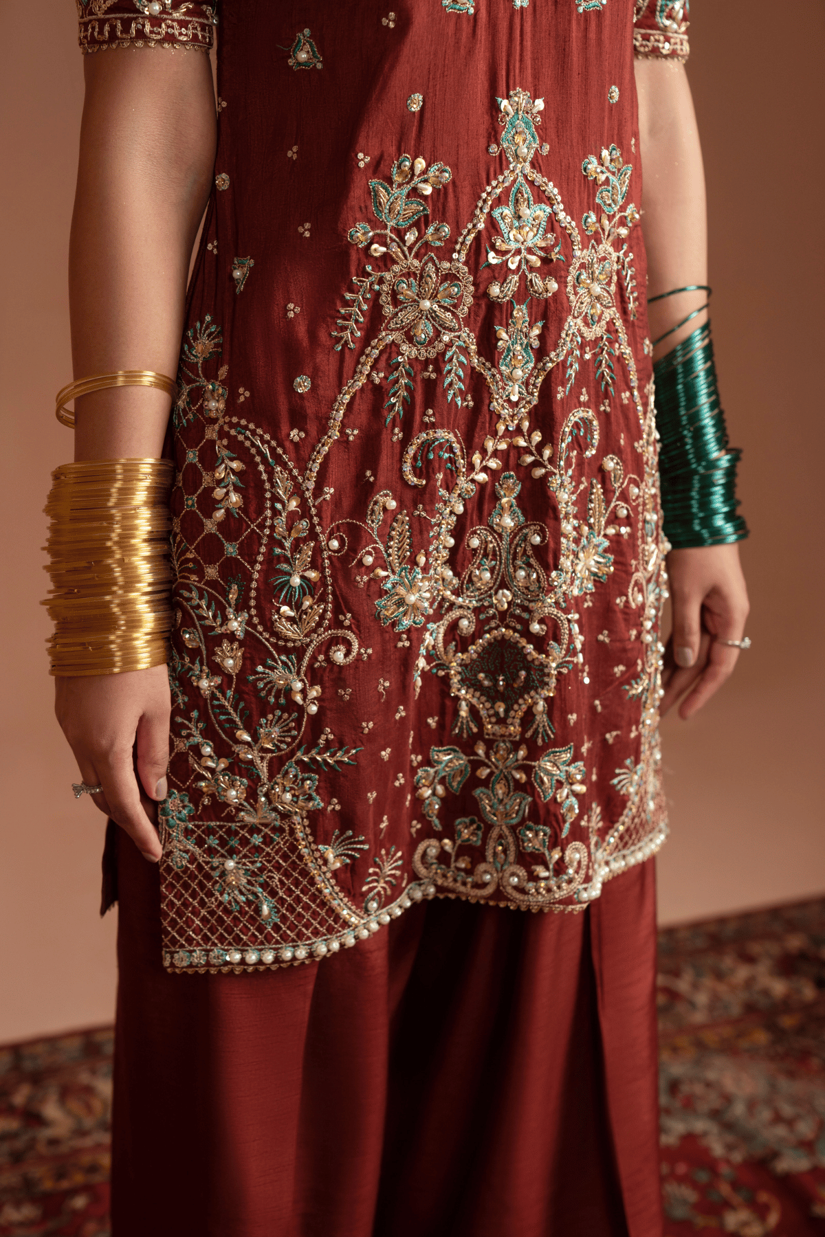 - Korean raw silk Farshi Shalwar – Length 42 inches